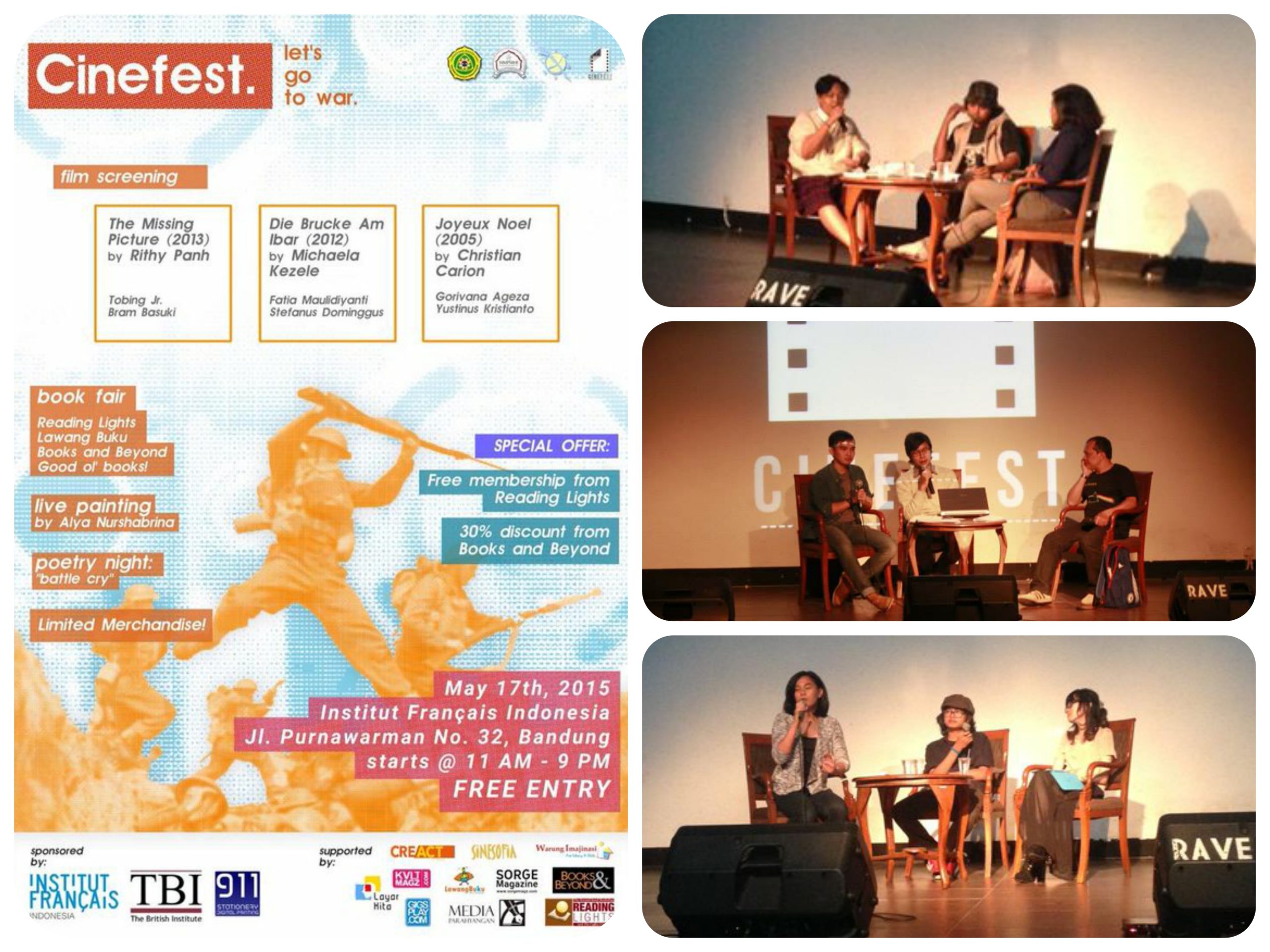 Berangkat dari keinginan untuk menambah wawasan isu-isu Internasional, Divisi Hubungan Masyarakat Himpunan Mahasiswa Program Studi Ilmu Hubungan Internasional (HMPSIHI) menggelar Cinema Festival (Cinefest) 2015 di Pusat Kebudayaan Perancis, Bandung. Acara Cinefest 2015 ini berlangsung tanggal 17 Mei 2015 dan diikuti oleh mahasiswa, kaum muda, dan masyarakat umum. Melalui acara ini, para peserta yang hadir, khususnya mahasiswa Hubungan Internasional, dituntut untuk dapat mengkaji film dalam konteks ilmu Hubungan Internasional. Ada tiga film yang disajikan, yaitu The Missing Picture (Rithy Panh,2013), Die Brucke Am Ibar (Michaela Kezeie,2012), dan Joyeux Noel (Christian Carion,2005). Selain mengkaji film, di Cinefest 2015 ini juga terdapat pameran seni, pameran buku, dan malam puisi. Pada penyelenggaraan Cinefest 2015, terlihat antusias mahasiswa dan masyarakat umum dari berbagai kalangan yang datang. (Triayu Anies Nabila & Siti Sarah P. Assegaf)