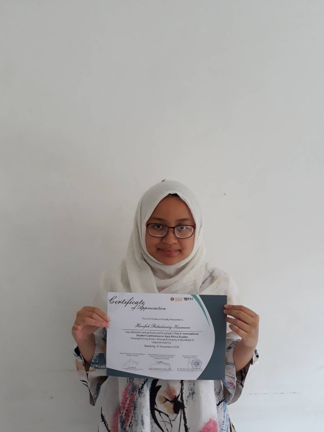Prestasi lainnya diraih oleh Hanifah Rahadianty Kusmana yang merupakan mahasiswa HI Unpar. International Student Conference on Asian African Studies yang dilaksanakan pada tanggal 4 November 2018. Acara tersebut dilaksanakan di Bandung. Tema besar yang diangkat dari acara tersebut adalah Strengthening Asian-African Economy in the Midst of Unpredictability.