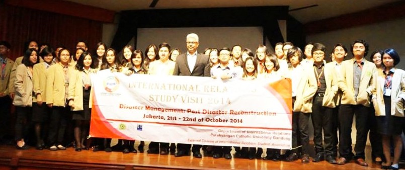 Pada tanggal 21 dan 22 Oktober 2014, Himpunan Mahasiswa Program Studi Ilmu Hubungan Internasional Divisi Eksternal mengadakan Study Visit 2014 ke beberapa Kedutaan Besar, Organisasi Internasional, dan NGO. Tema yang diangkat pada kunjungan kali ini ialah Disaster Management: Post Disaster Reconstruction. Program ini diikuti oleh 120 mahasiswa Hubungan Internasional angkatan 2012 dan 2013 dan dibagi menjadi 3 kelompok.
